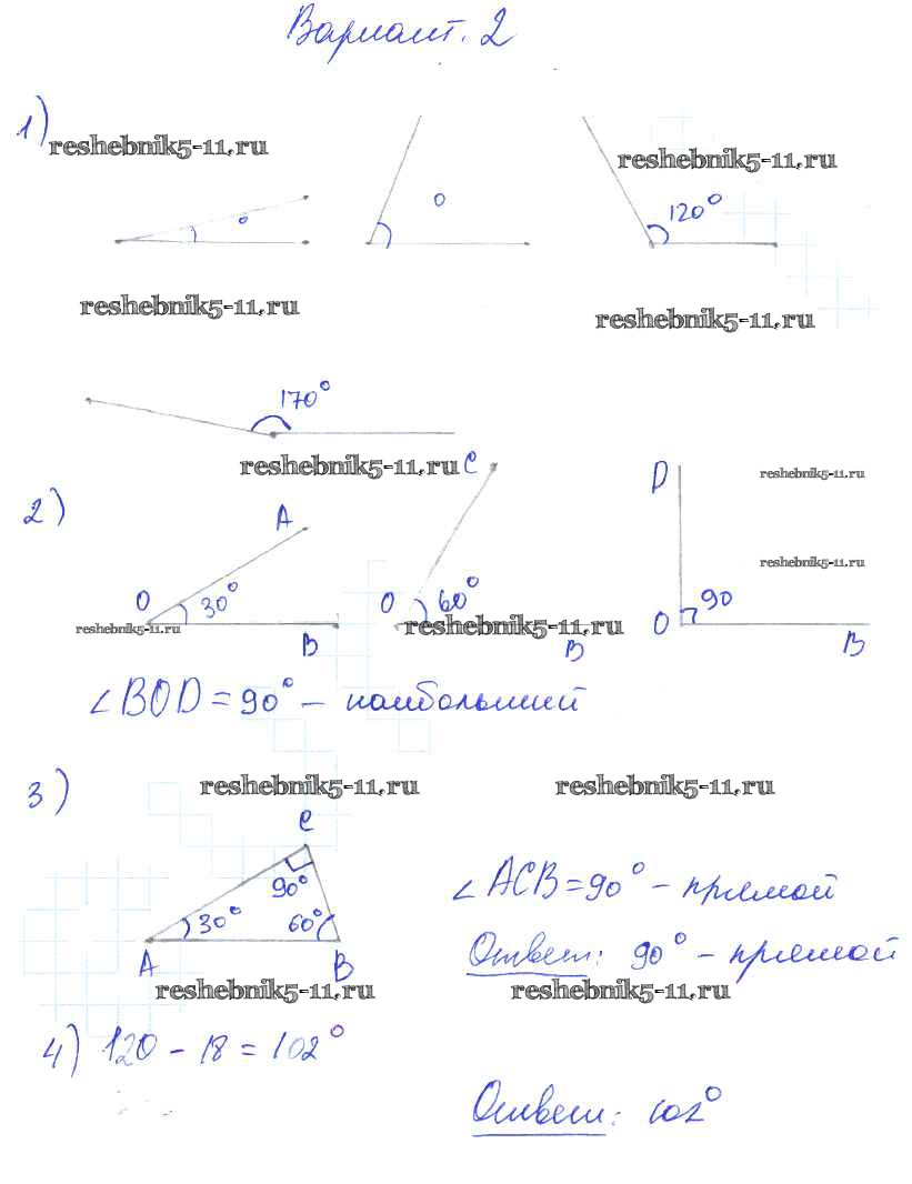 Готовая домашняя работа с ответами по Математике за 5 класс Попов Дидактические материалы УМК Экзамен 2017 ФГОС - СР №42. Измерение углов. Транспортир вариант №2