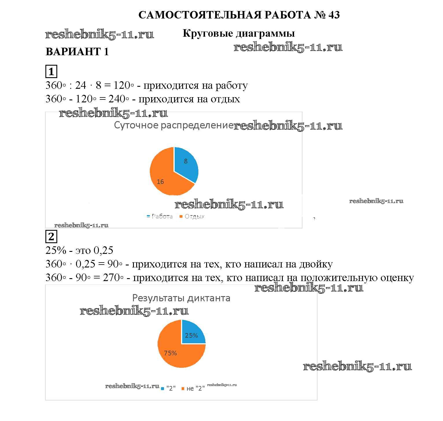 Готовая домашняя работа с ответами по Математике за 5 класс Попов Дидактические материалы УМК Экзамен 2017 ФГОС - СР №43. Круговые диаграммы вариант №1