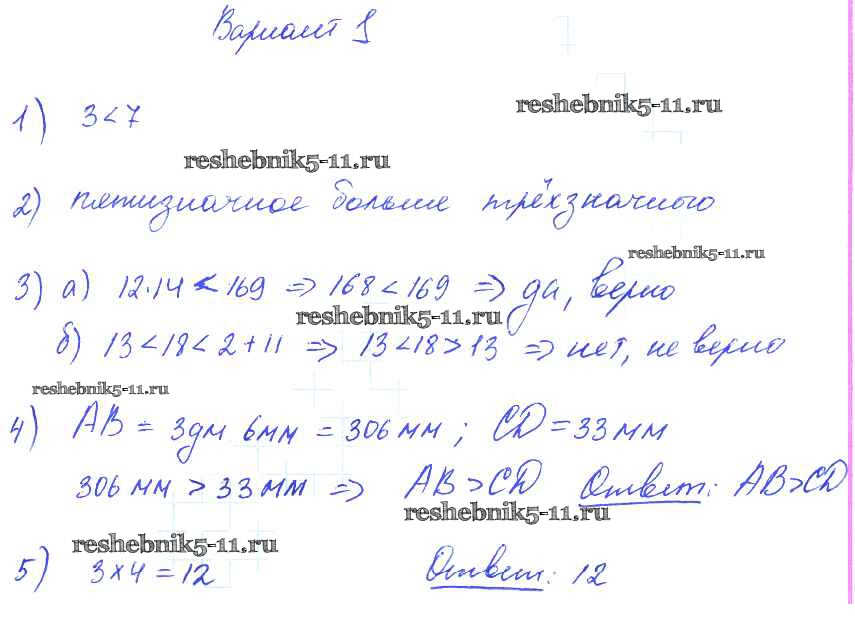 Готовая домашняя работа с ответами по Математике за 5 класс Попов Дидактические материалы УМК Экзамен 2017 ФГОС - СР №5. Меньше или больше вариант №1
