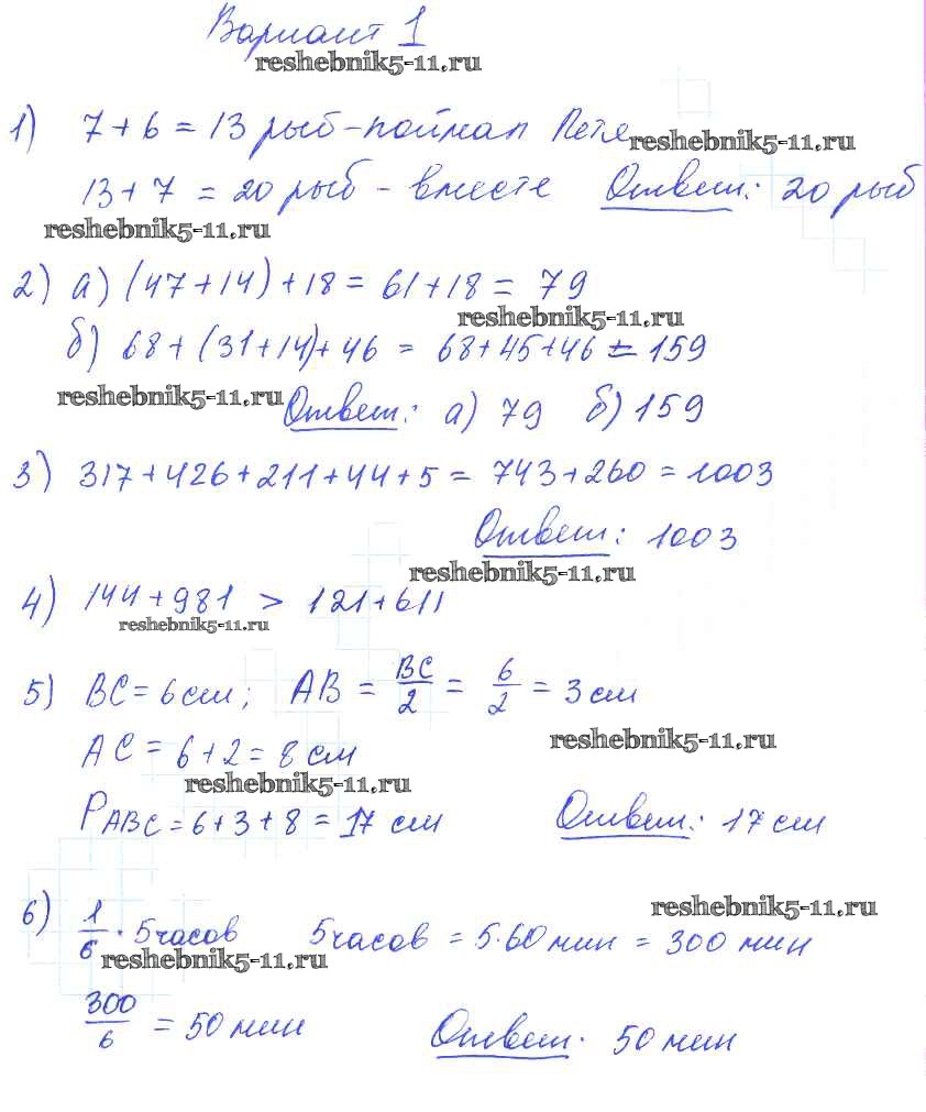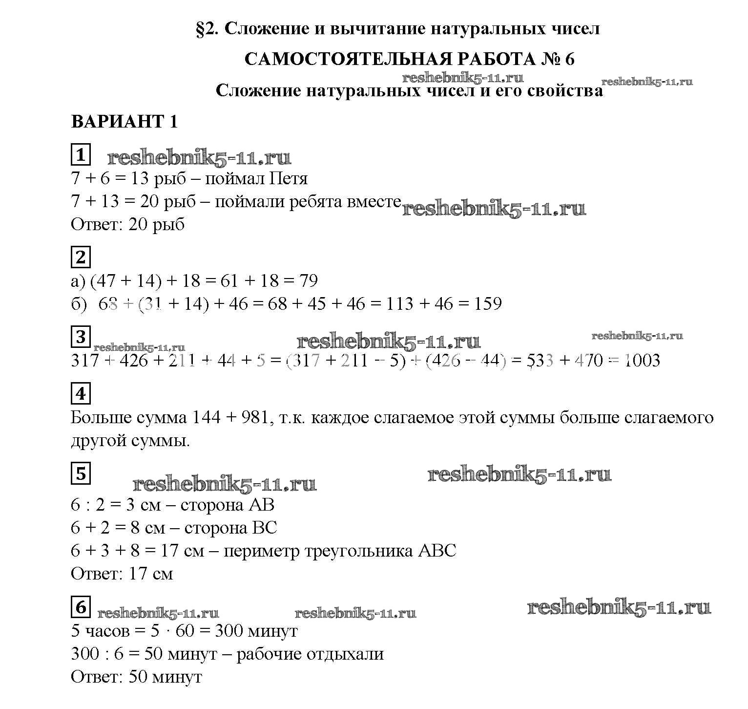Готовая домашняя работа с ответами по Математике за 5 класс Попов Дидактические материалы УМК Экзамен 2017 ФГОС - СР №6. Сложение натуральных чисел и его свойства вариант №1