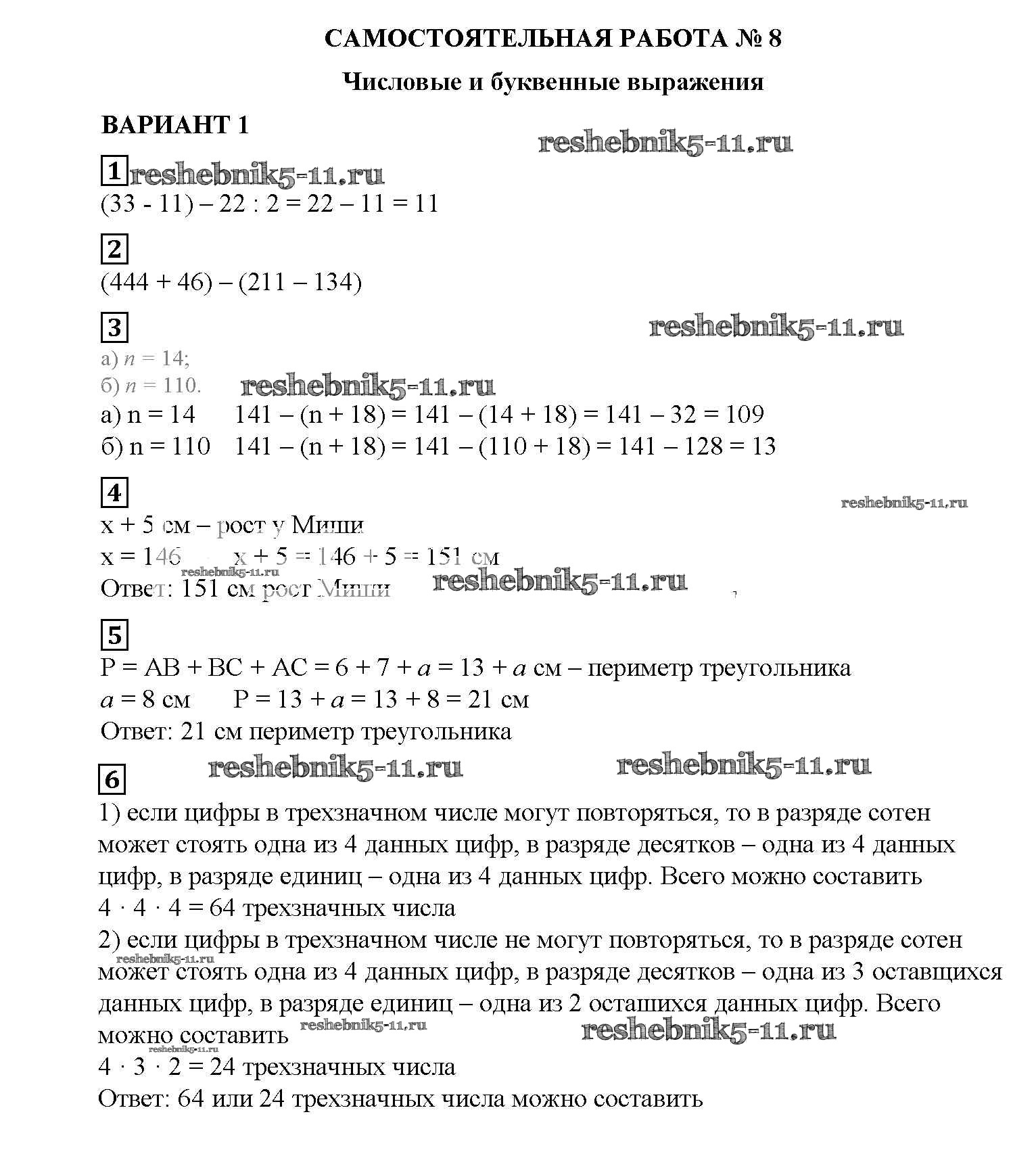 Готовая домашняя работа с ответами по Математике за 5 класс Попов Дидактические материалы УМК Экзамен 2017 ФГОС - СР №8. Числовые и буквенные выражения вариант №1