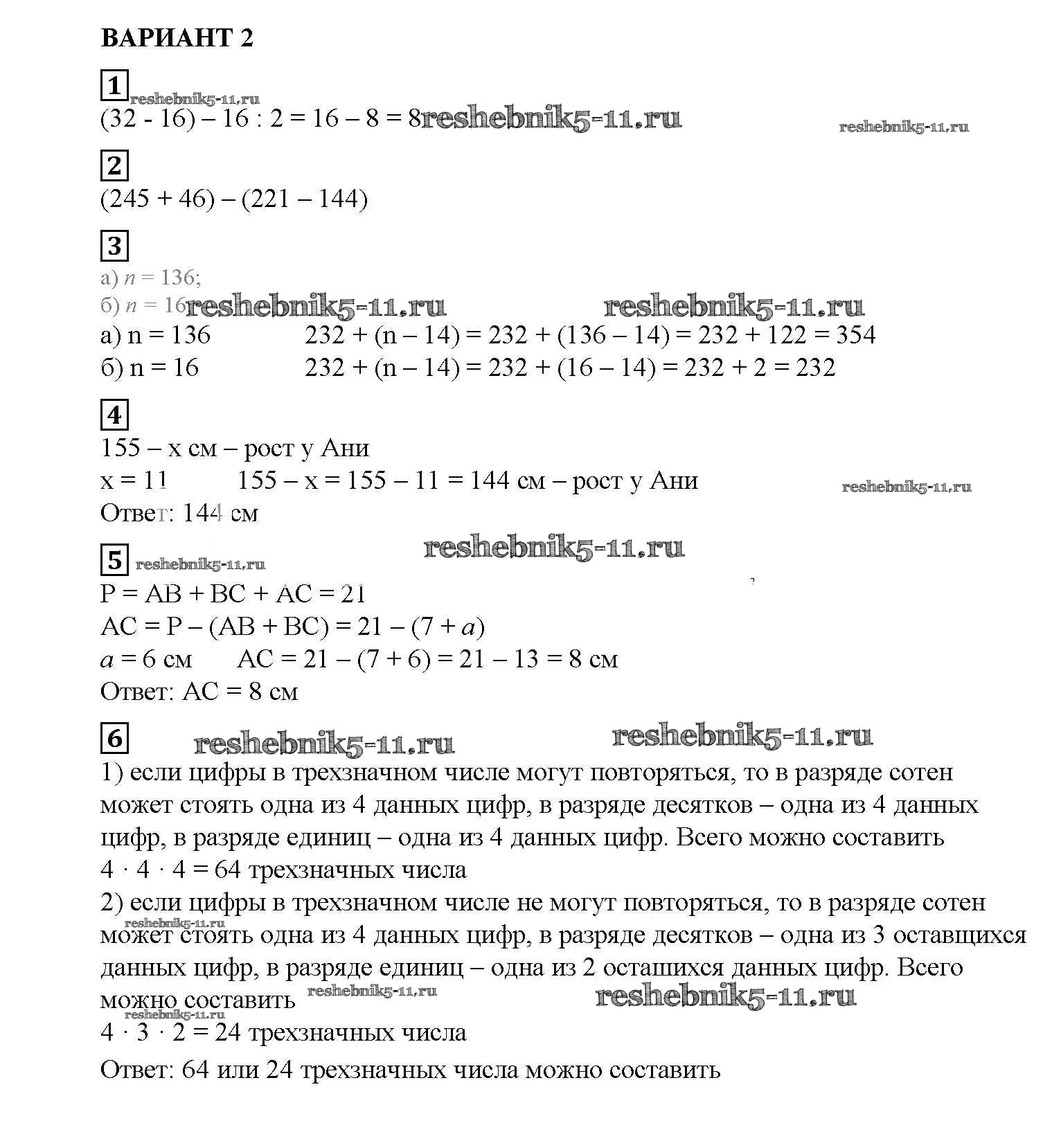 Готовая домашняя работа с ответами по Математике за 5 класс Попов Дидактические материалы УМК Экзамен 2017 ФГОС - СР №8. Числовые и буквенные выражения вариант №2