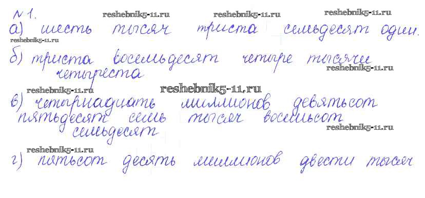 Готовая домашняя работа с ответами по Математике за 5 класс Кузнецова, Минаева, Рослова, Суворова Дидактические материалы Академический школьный учебник Просвещение 2014 ФГОС - О-1. Чтение и запись чисел 1