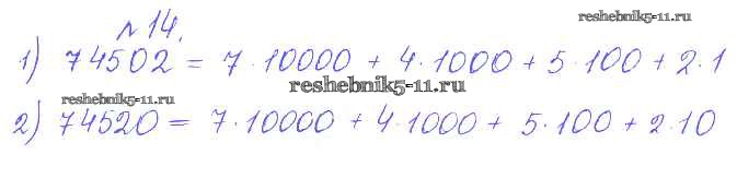 Готовая домашняя работа с ответами по Математике за 5 класс Кузнецова, Минаева, Рослова, Суворова Дидактические материалы Академический школьный учебник Просвещение 2014 ФГОС - О-2. Представление числа в виде суммы разрядных слагаемых 14