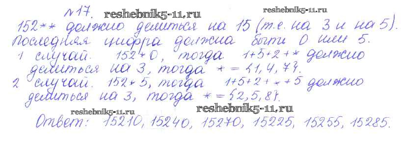 Готовая домашняя работа с ответами по Математике за 5 класс Кузнецова, Минаева, Рослова, Суворова Дидактические материалы Академический школьный учебник Просвещение 2014 ФГОС - О-25. Признаки делимости 17