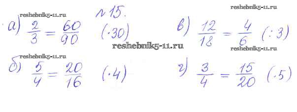 Готовая домашняя работа с ответами по Математике за 5 класс Кузнецова, Минаева, Рослова, Суворова Дидактические материалы Академический школьный учебник Просвещение 2014 ФГОС - О-28. Приведение дробей к новому знаменателю. Сокращение дробей 15