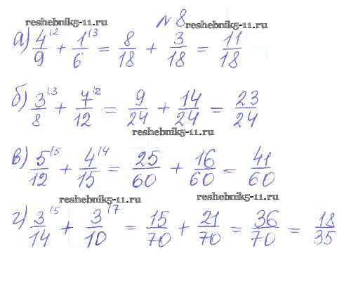 Готовая домашняя работа с ответами по Математике за 5 класс Кузнецова, Минаева, Рослова, Суворова Дидактические материалы Академический школьный учебник Просвещение 2014 ФГОС - О-32. Сложение дробей 8