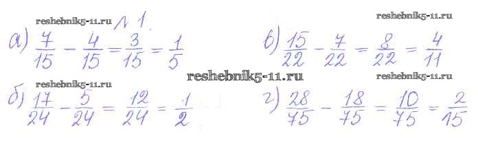 Готовая домашняя работа с ответами по Математике за 5 класс Кузнецова, Минаева, Рослова, Суворова Дидактические материалы Академический школьный учебник Просвещение 2014 ФГОС - О-33. Вычитание дробей 1
