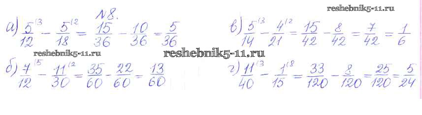 Готовая домашняя работа с ответами по Математике за 5 класс Кузнецова, Минаева, Рослова, Суворова Дидактические материалы Академический школьный учебник Просвещение 2014 ФГОС - О-33. Вычитание дробей 8