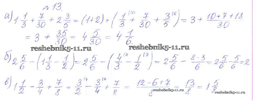 Готовая домашняя работа с ответами по Математике за 5 класс Кузнецова, Минаева, Рослова, Суворова Дидактические материалы Академический школьный учебник Просвещение 2014 ФГОС - О-35. Сложение и вычитание смешанных дробей 13