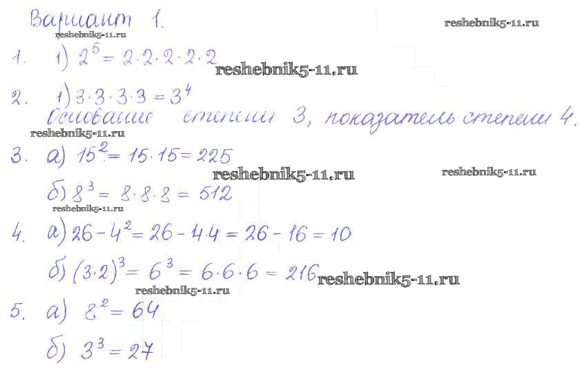 Готовая домашняя работа с ответами по Математике за 5 класс Кузнецова, Минаева, Рослова, Суворова Дидактические материалы Академический школьный учебник Просвещение 2014 ФГОС - ПР №12. Степень числа вариант-1
