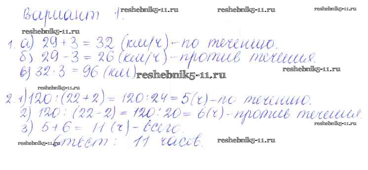Готовая домашняя работа с ответами по Математике за 5 класс Кузнецова, Минаева, Рослова, Суворова Дидактические материалы Академический школьный учебник Просвещение 2014 ФГОС - ПР №14. Задачи на движение по реке вариант-1