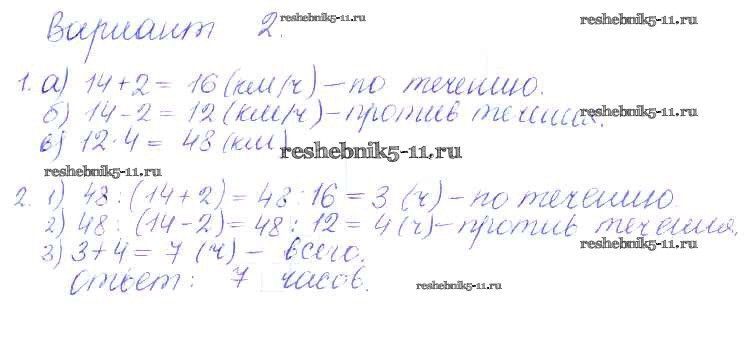 Готовая домашняя работа с ответами по Математике за 5 класс Кузнецова, Минаева, Рослова, Суворова Дидактические материалы Академический школьный учебник Просвещение 2014 ФГОС - ПР №14. Задачи на движение по реке вариант-2