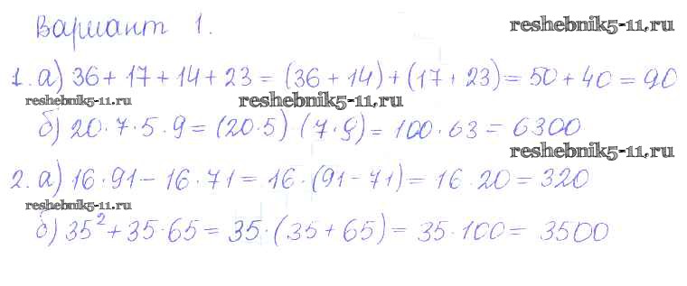 Готовая домашняя работа с ответами по Математике за 5 класс Кузнецова, Минаева, Рослова, Суворова Дидактические материалы Академический школьный учебник Просвещение 2014 ФГОС - ПР №15. Использование свойств действий при вычислении вариант-1