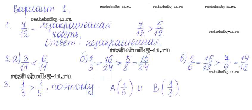 Готовая домашняя работа с ответами по Математике за 5 класс Кузнецова, Минаева, Рослова, Суворова Дидактические материалы Академический школьный учебник Просвещение 2014 ФГОС - ПР №28. Сравнение дробей вариант-1