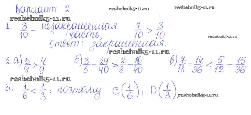 Готовая домашняя работа с ответами по Математике за 5 класс Кузнецова, Минаева, Рослова, Суворова Дидактические материалы Академический школьный учебник Просвещение 2014 ФГОС - ПР №28. Сравнение дробей вариант-2
