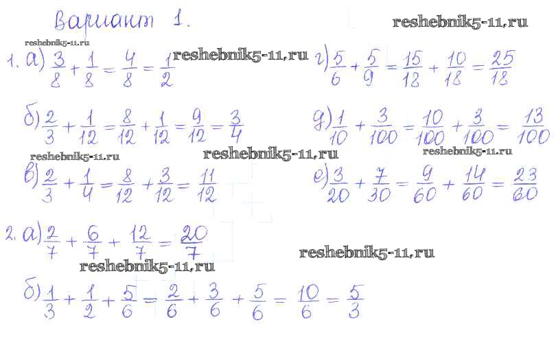 Готовая домашняя работа с ответами по Математике за 5 класс Кузнецова, Минаева, Рослова, Суворова Дидактические материалы Академический школьный учебник Просвещение 2014 ФГОС - ПР №30. Сложение дробей вариант-1
