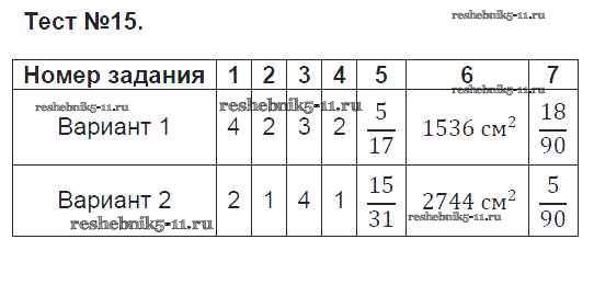 Готовая домашняя работа с ответами по Математике за 5 класс Глазков, Ахременкова, Гаиашвили Контрольно-измерительные материалы (КИМ) Экзамен 2014 ФГОС - Тесты Тест №15