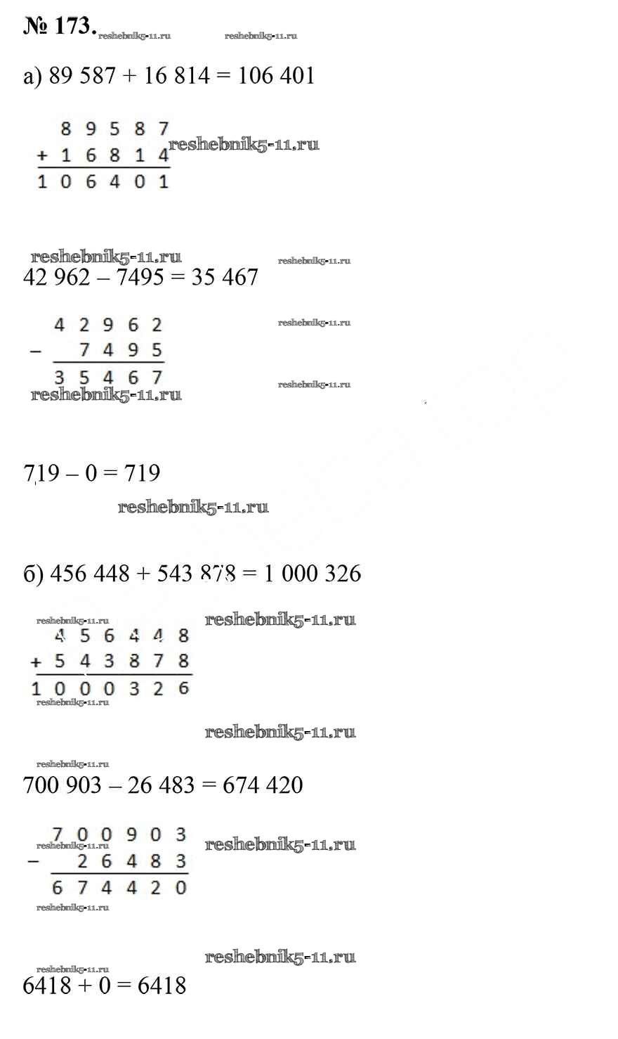 Готовая домашняя работа с ответами по Математике за 5 класс Герасимов, Пирютко, Лобанов Учебник Часть 1, 2 Образование и воспитание 2017 - Глава 1 173