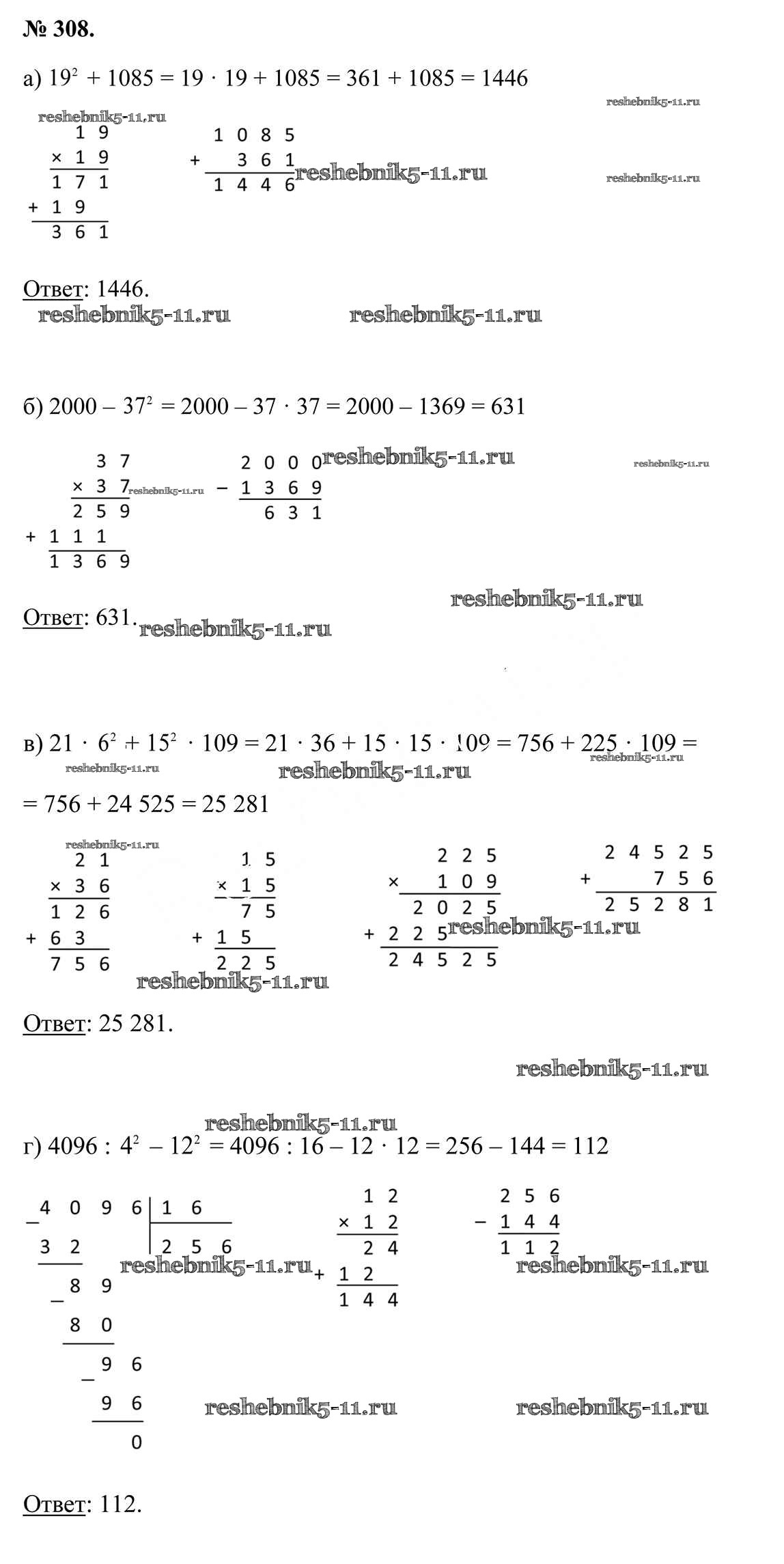 Готовая домашняя работа с ответами по Математике за 5 класс Герасимов, Пирютко, Лобанов Учебник Часть 1, 2 Образование и воспитание 2017 - Глава 3 308