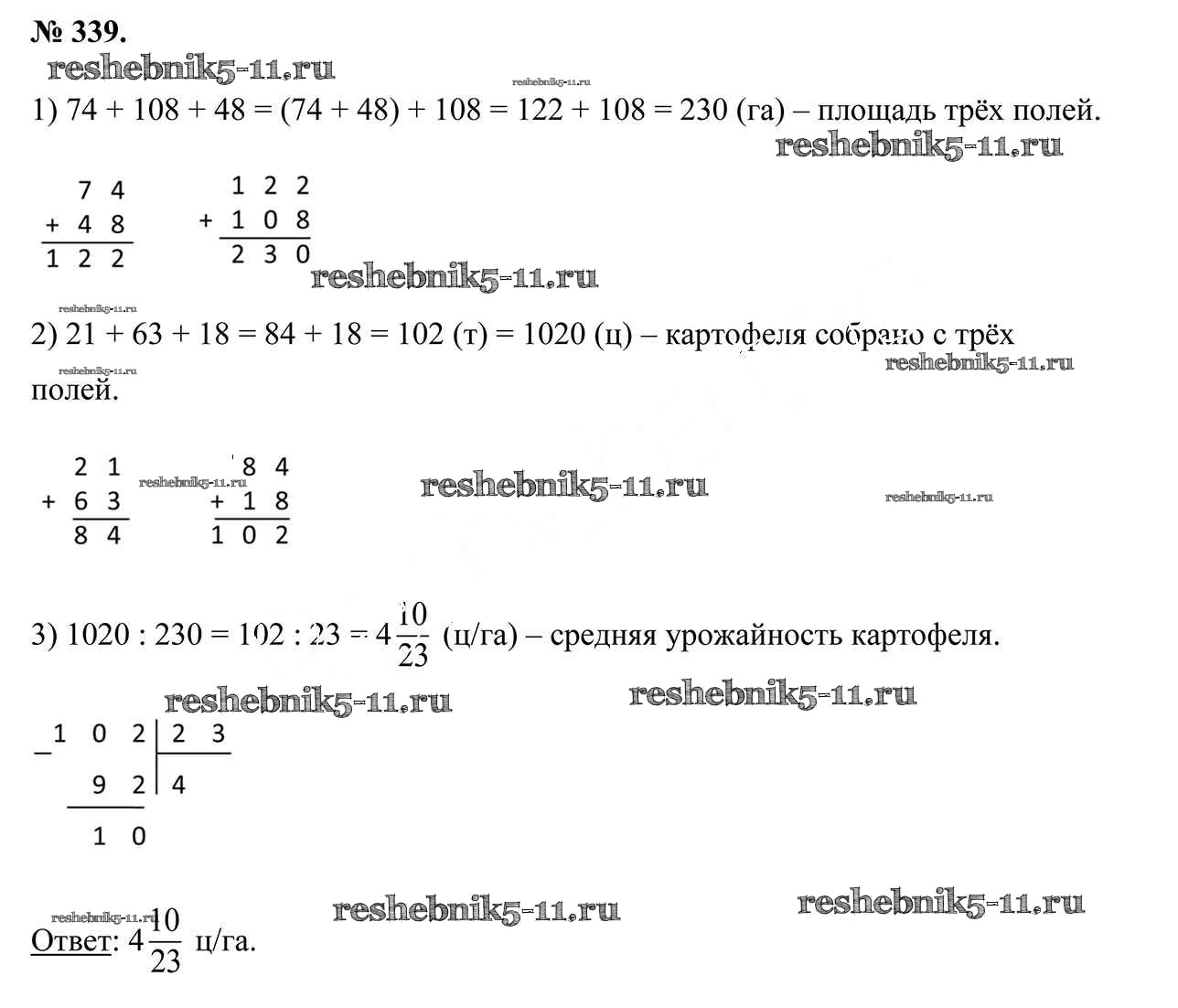 Готовая домашняя работа с ответами по Математике за 5 класс Герасимов, Пирютко, Лобанов Учебник Часть 1, 2 Образование и воспитание 2017 - Глава 3 339
