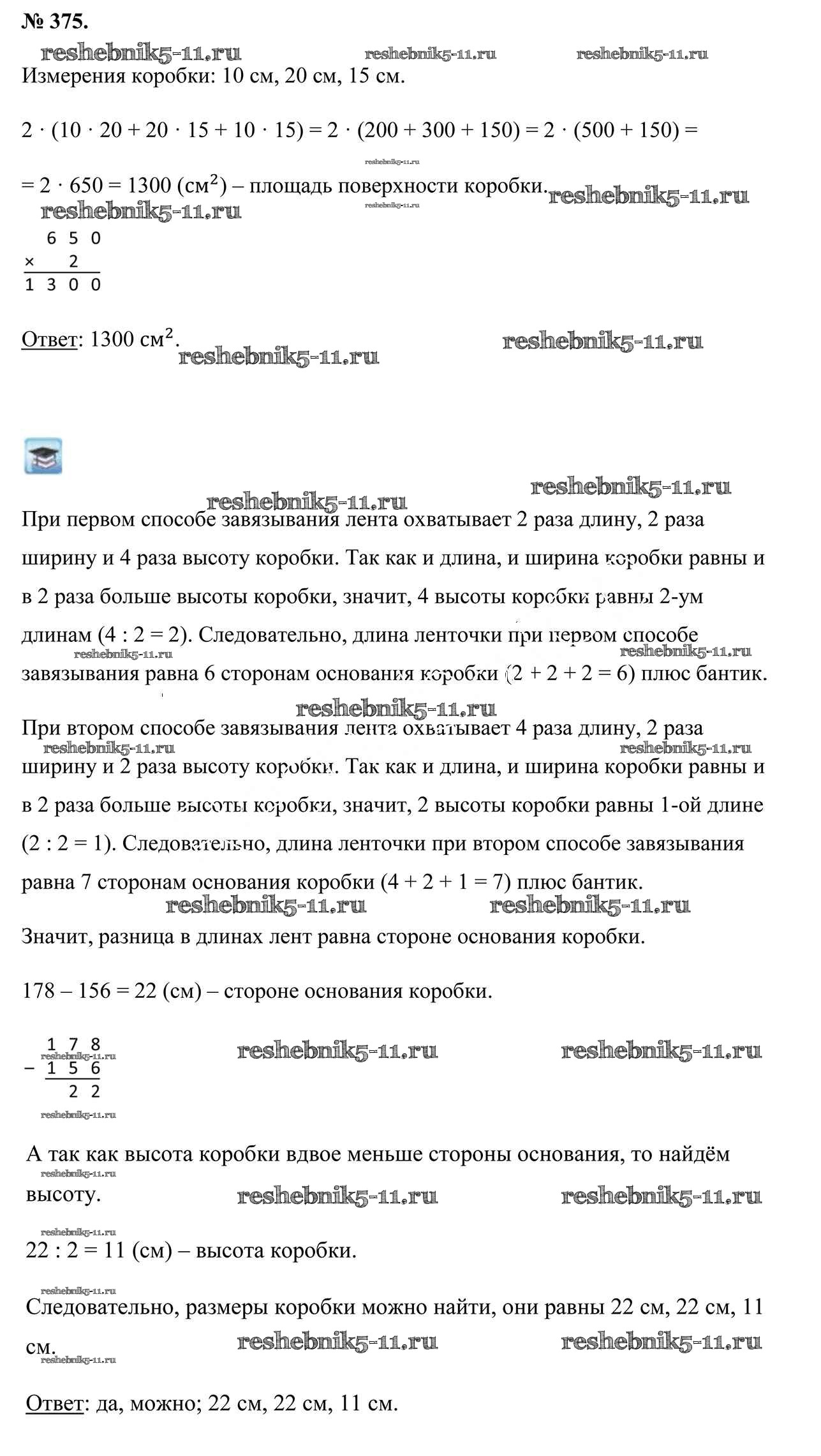 Готовая домашняя работа с ответами по Математике за 5 класс Герасимов, Пирютко, Лобанов Учебник Часть 1, 2 Образование и воспитание 2017 - Глава 3 375