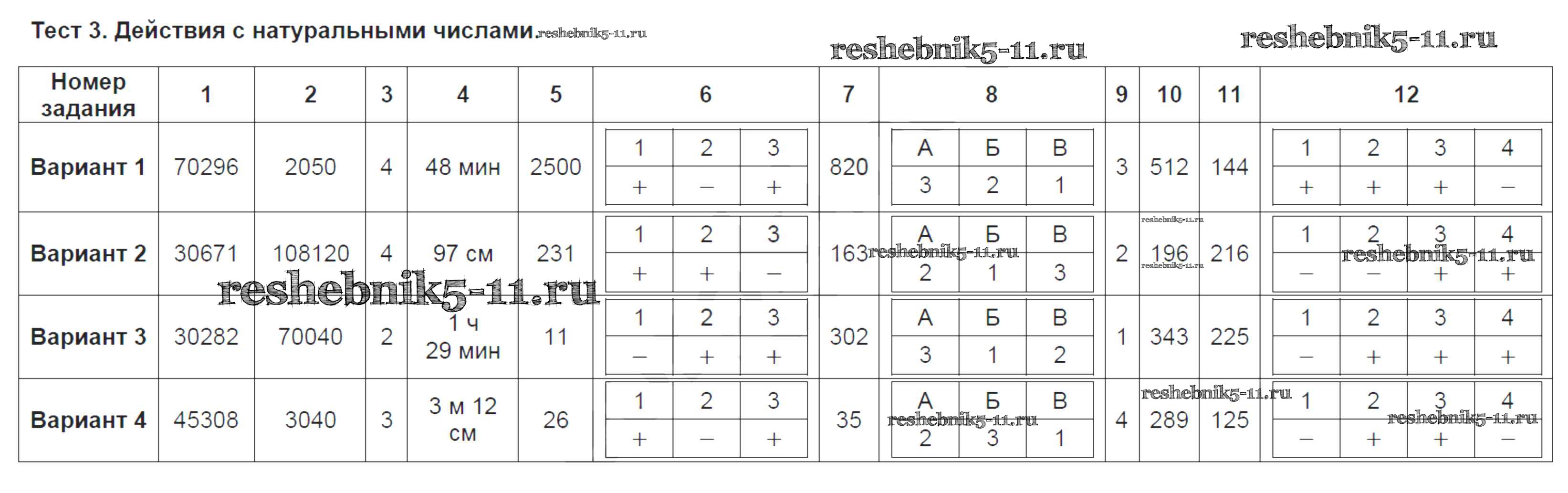 Готовая домашняя работа с ответами по Математике за 5 класс Кузнецова, Минаева, Рослова, Суворова Тематические тесты Просвещение 2018 ФГОС - Тесты Тест №3. Действия с натуральными числами