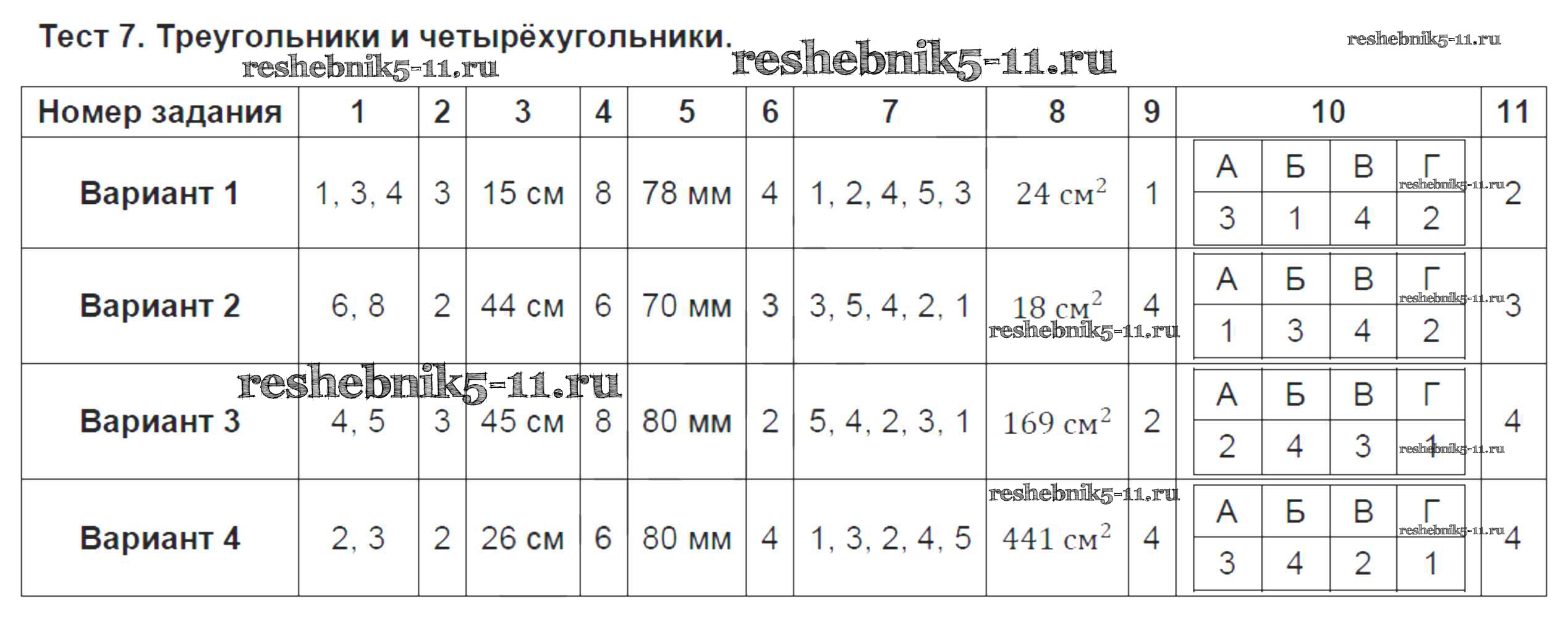 Готовая домашняя работа с ответами по Математике за 5 класс Кузнецова, Минаева, Рослова, Суворова Тематические тесты Просвещение 2018 ФГОС - Тесты Тест №7. Треугольники и четырёхугольники