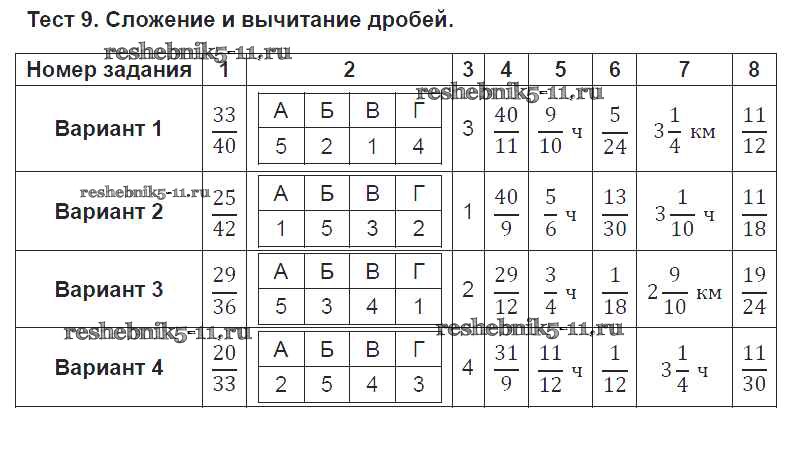 Решебник / тест / тест №9. сложение и вычитание дробей