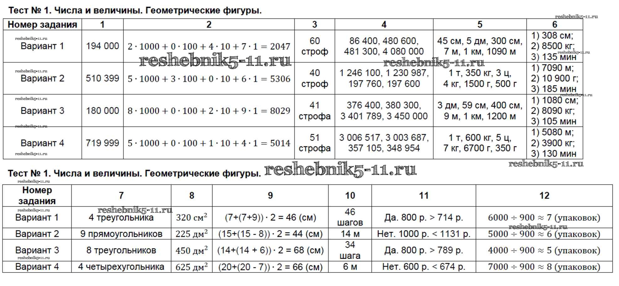 Готовая домашняя работа с ответами по Математике за 5 класс Минаева Тесты УМК Экзамен 2016 ФГОС - Тесты Тест №1. Числа и величины. Геометрические фигуры