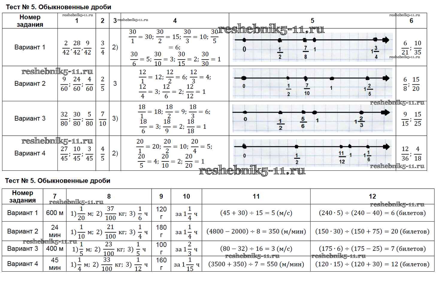 Готовая домашняя работа с ответами по Математике за 5 класс Минаева Тесты УМК Экзамен 2016 ФГОС - Тесты Тест №5. Обыкновенные дроби