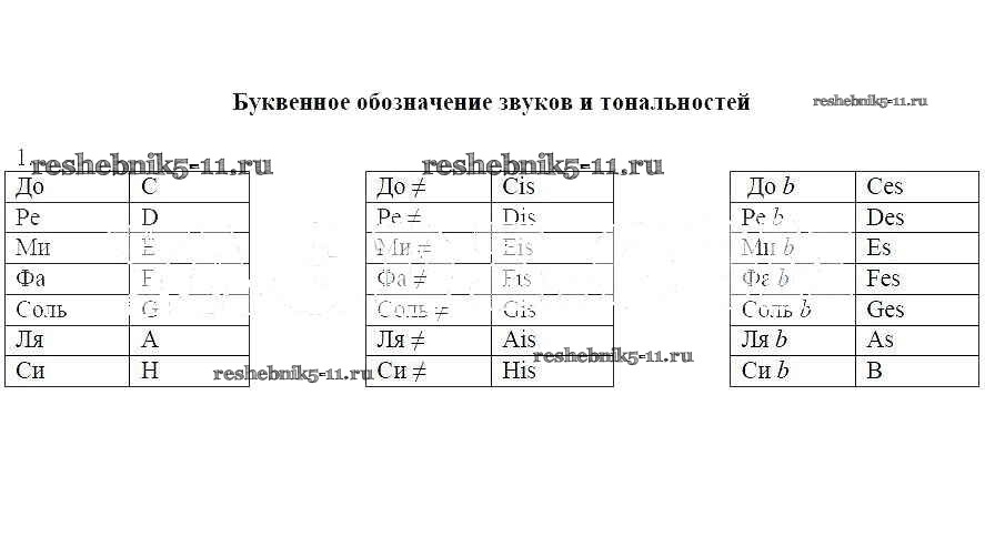 Решебник / буквенное обозначение звуков и тональностей / 1