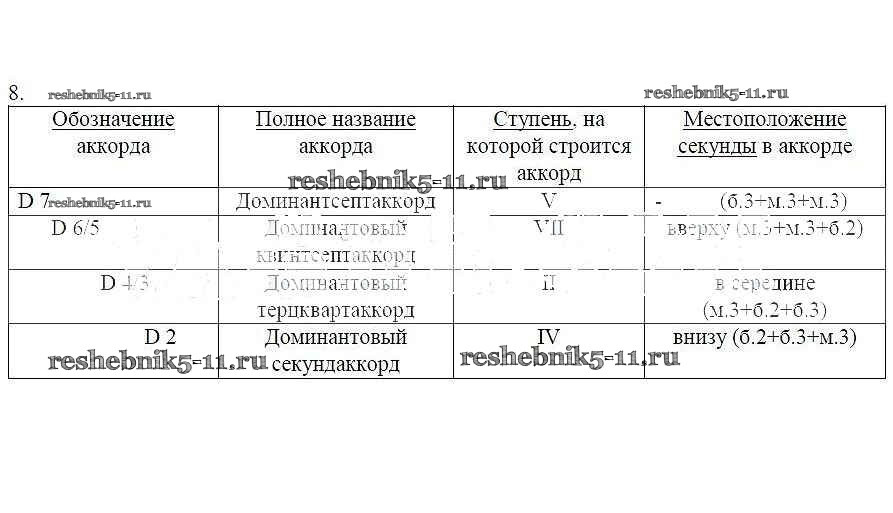 Готовая домашняя работа с ответами по Музыке за 5 класс Калинина Рабочая тетрадь Калинин 2015 - Доминантсептааккорд и его обращения 8