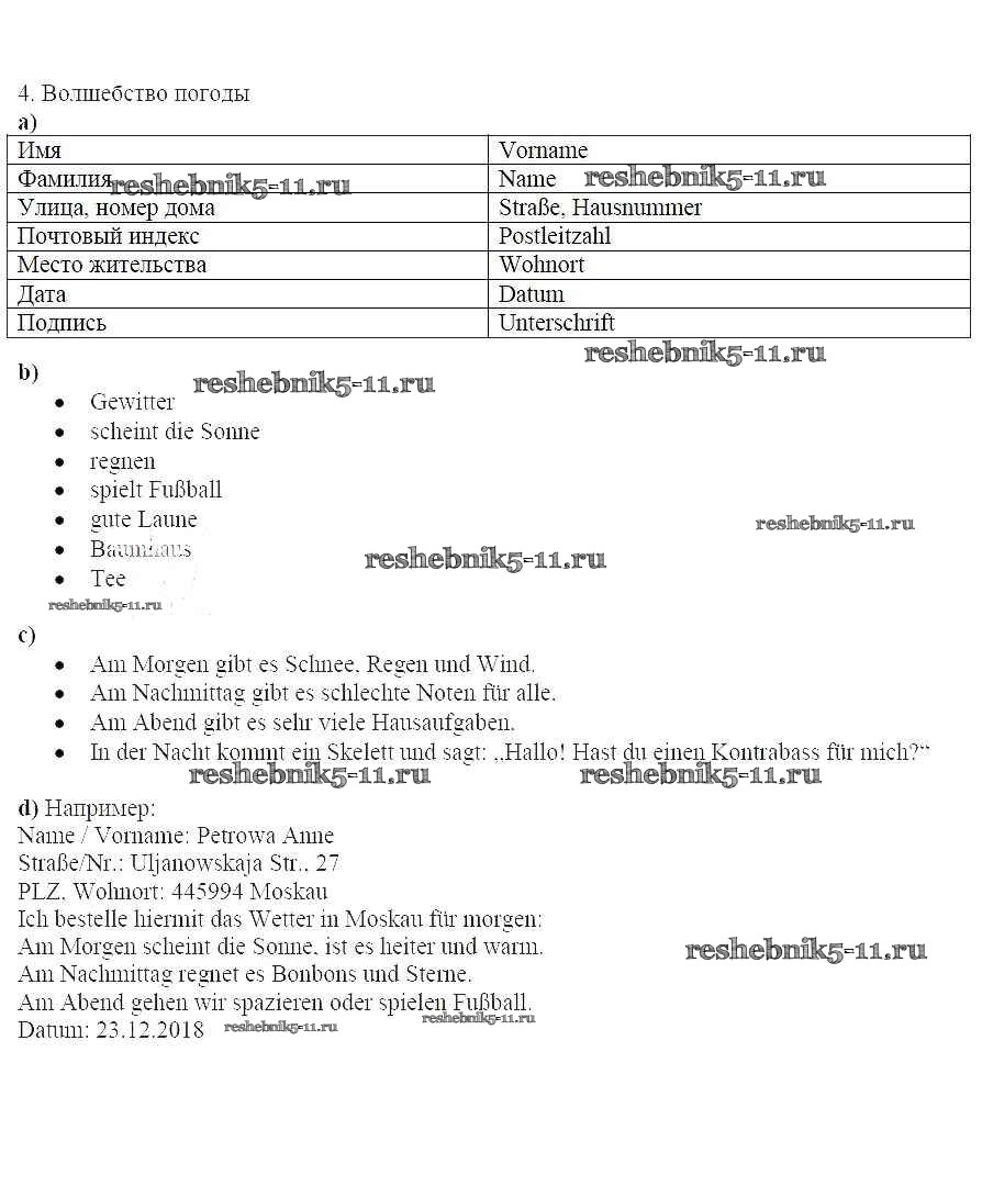 Готовая домашняя работа с ответами по Немецкому языку за 5 класс Яцковская Рабочая тетрадь Wunderkinder Часть 1, 2, 3, 4 Просвещение 2019 ФГОС - Глава 11 4