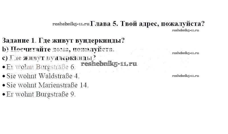 Готовая домашняя работа с ответами по Немецкому языку за 5 класс Яцковская Учебник Wunderkinder Просвещение 2017 ФГОС - Глава 5. Твой адрес, пожалуйста 1