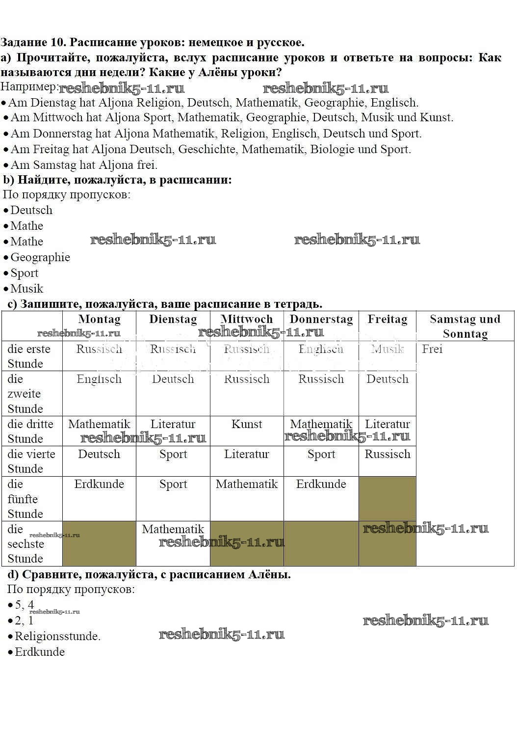 Готовая домашняя работа с ответами по Немецкому языку за 5 класс Яцковская Учебник Wunderkinder Просвещение 2017 ФГОС - Глава 7. Завтра всё начинается 10