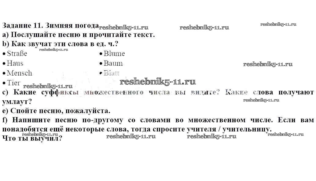 Готовая домашняя работа с ответами по Немецкому языку за 5 класс Яцковская Учебник Wunderkinder Просвещение 2017 ФГОС - Глава 11. Зима, погода, веселье 11