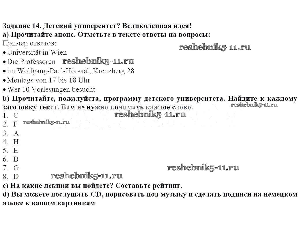 Готовая домашняя работа с ответами по Немецкому языку за 5 класс Яцковская Учебник Wunderkinder Просвещение 2017 ФГОС - Глава 13. Вундеркинды кое-что умеют! 14