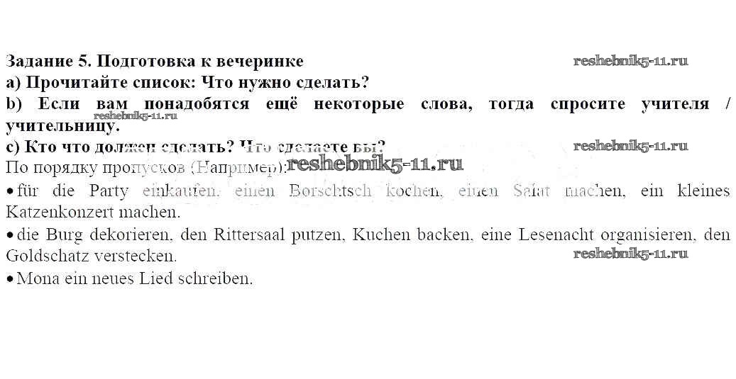 Готовая домашняя работа с ответами по Немецкому языку за 5 класс Яцковская Учебник Wunderkinder Просвещение 2017 ФГОС - Глава 15. Встреча в крепости 5