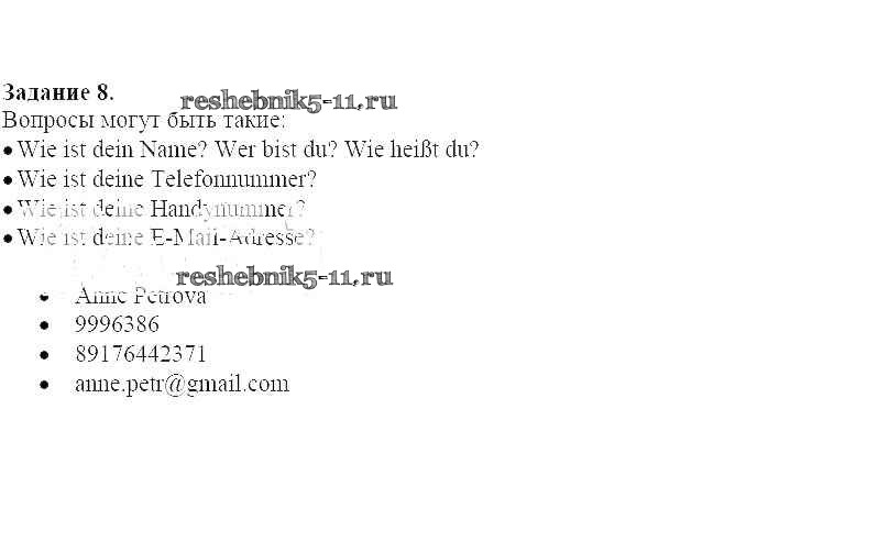 Готовая домашняя работа с ответами по Немецкому языку за 5 класс Аверин, Рорман, Джин Рабочая тетрадь Horizonte Просвещение 2020 ФГОС - Глава 2 8