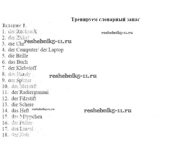 Готовая домашняя работа с ответами по Немецкому языку за 5 класс Аверин, Рорман, Джин Рабочая тетрадь Horizonte Просвещение 2020 ФГОС - Тренируем словарный запас 1