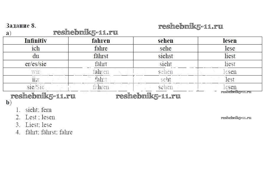 Готовая домашняя работа с ответами по Немецкому языку за 5 класс Аверин, Рорман, Джин Рабочая тетрадь Horizonte Просвещение 2020 ФГОС - Глава 5 8