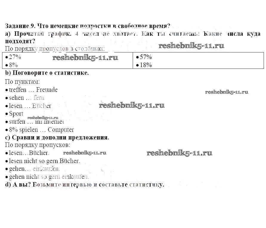 Готовая домашняя работа с ответами по Немецкому языку за 5 класс Аверин, Джин, Рорман, Збранкова Учебник Horizonte Просвещение 2016 ФГОС - Глава 5 9