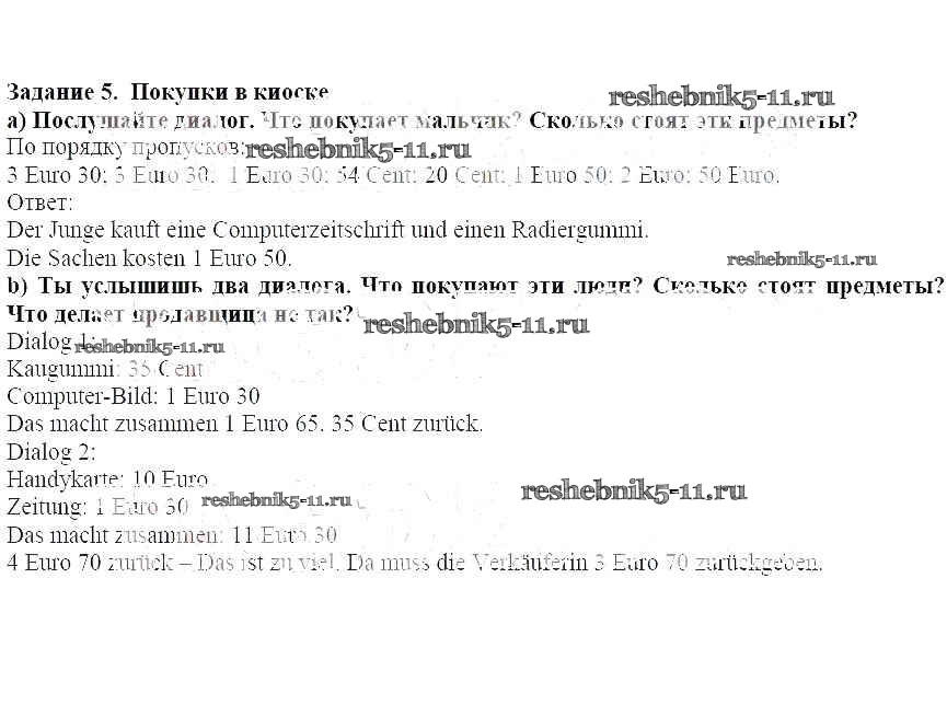 Готовая домашняя работа с ответами по Немецкому языку за 5 класс Аверин, Джин, Рорман, Збранкова Учебник Horizonte Просвещение 2016 ФГОС - Глава 7 5