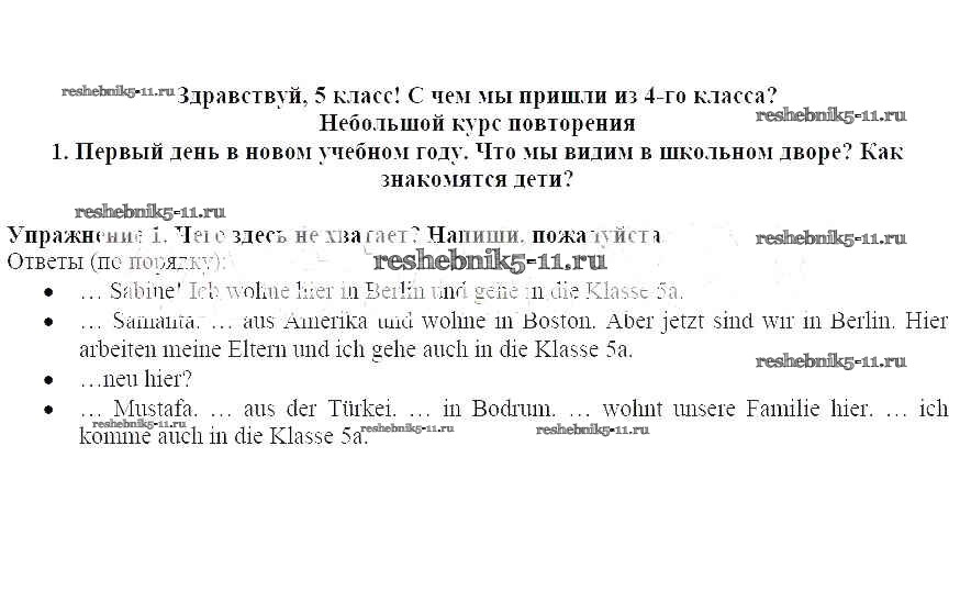 Готовая домашняя работа с ответами по Немецкому языку за 5 класс Бим Рабочая тетрадь Просвещение 2005 ФГОС - Первый день в новом учебном году. Что мы видим в школьном дворе Как знакомятся дети 1