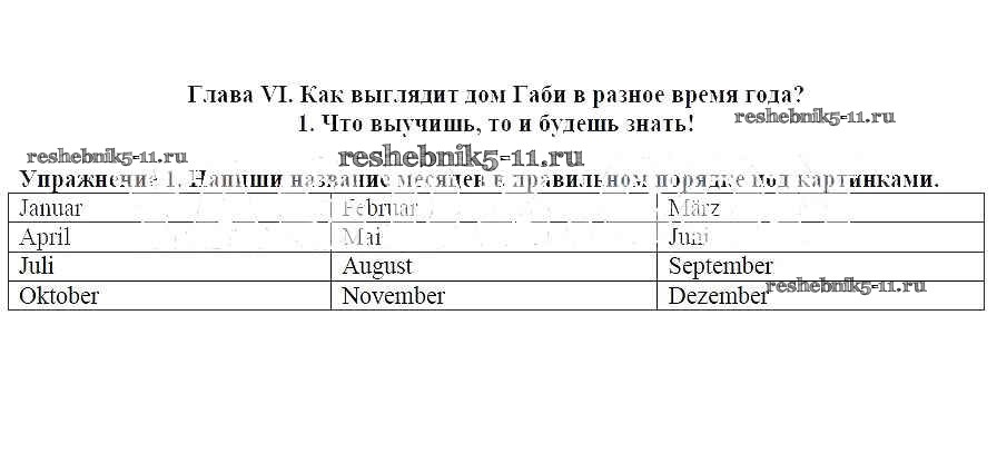 Решебник / Глава VI. Как выглядит дом Габи в разное время года / Что выучишь, то и будешь знать! / 1