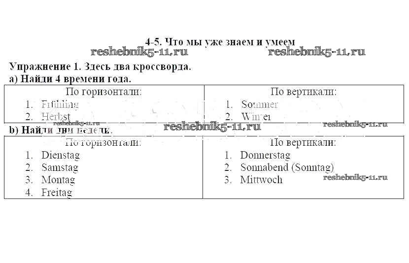 Готовая домашняя работа с ответами по Немецкому языку за 5 класс Бим Рабочая тетрадь Просвещение 2005 ФГОС - Что мы уже знаем и умеем 1