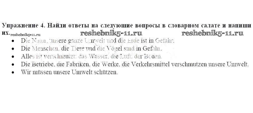 Готовая домашняя работа с ответами по Немецкому языку за 5 класс Бим Рабочая тетрадь Просвещение 2005 ФГОС - Что выучишь, то и будешь знать! 4