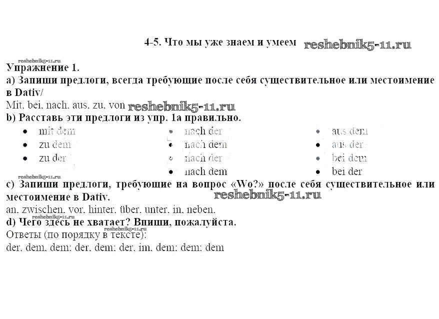 Готовая домашняя работа с ответами по Немецкому языку за 5 класс Бим Рабочая тетрадь Просвещение 2005 ФГОС - Что мы уже знаем и умеем 1