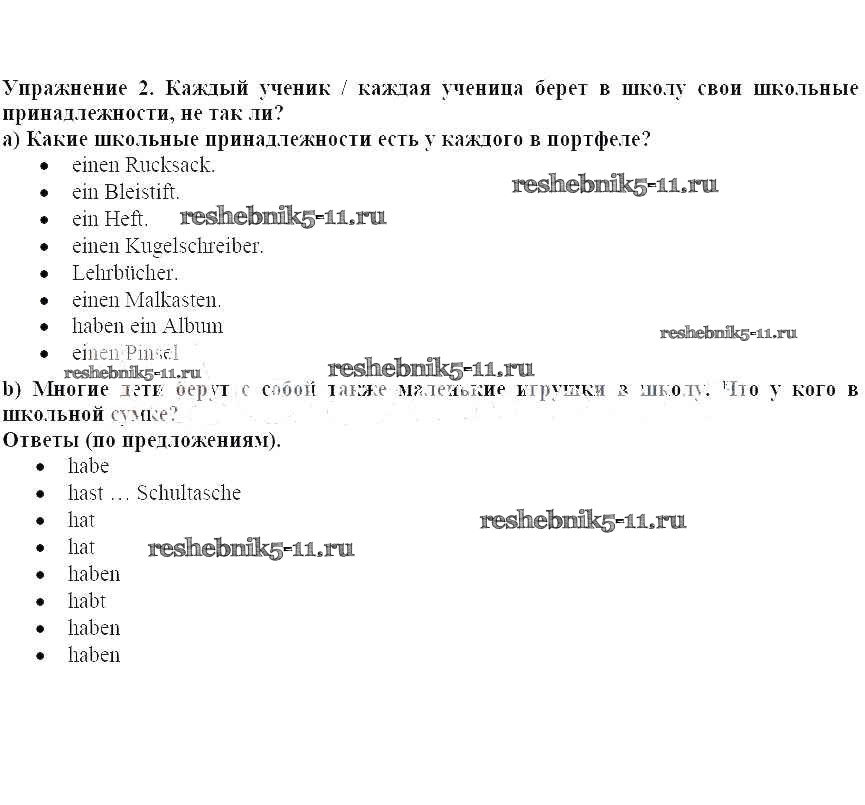 Готовая домашняя работа с ответами по Немецкому языку за 5 класс Бим Рабочая тетрадь Просвещение 2005 ФГОС - Что выучишь, то и будешь знать! 2